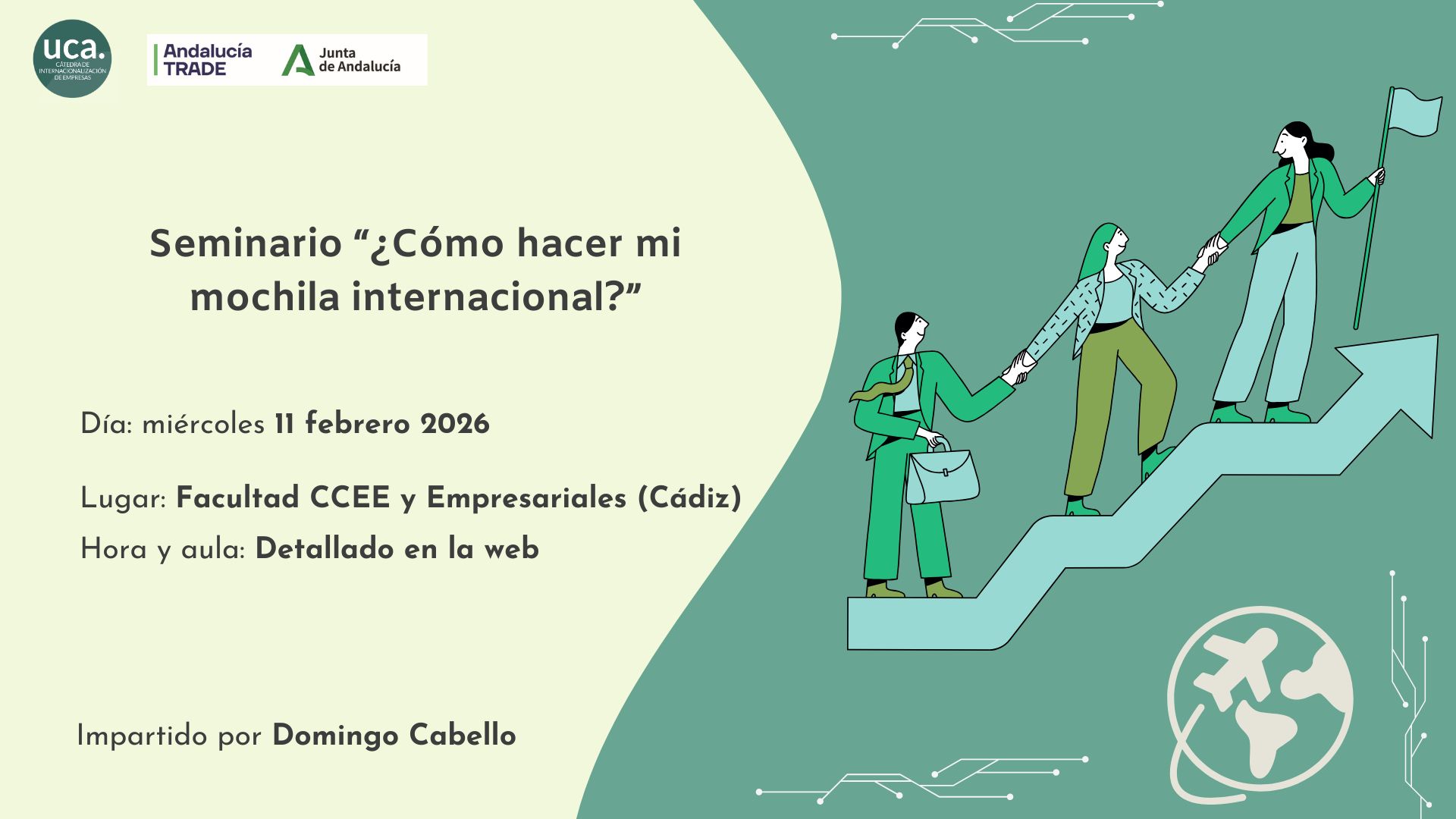 | Dirigido a estudiantes de 3º ADE-FYCO | 19:00h | Aula 4.5 (Fac. CCEE y Empresariales- Cádiz) |